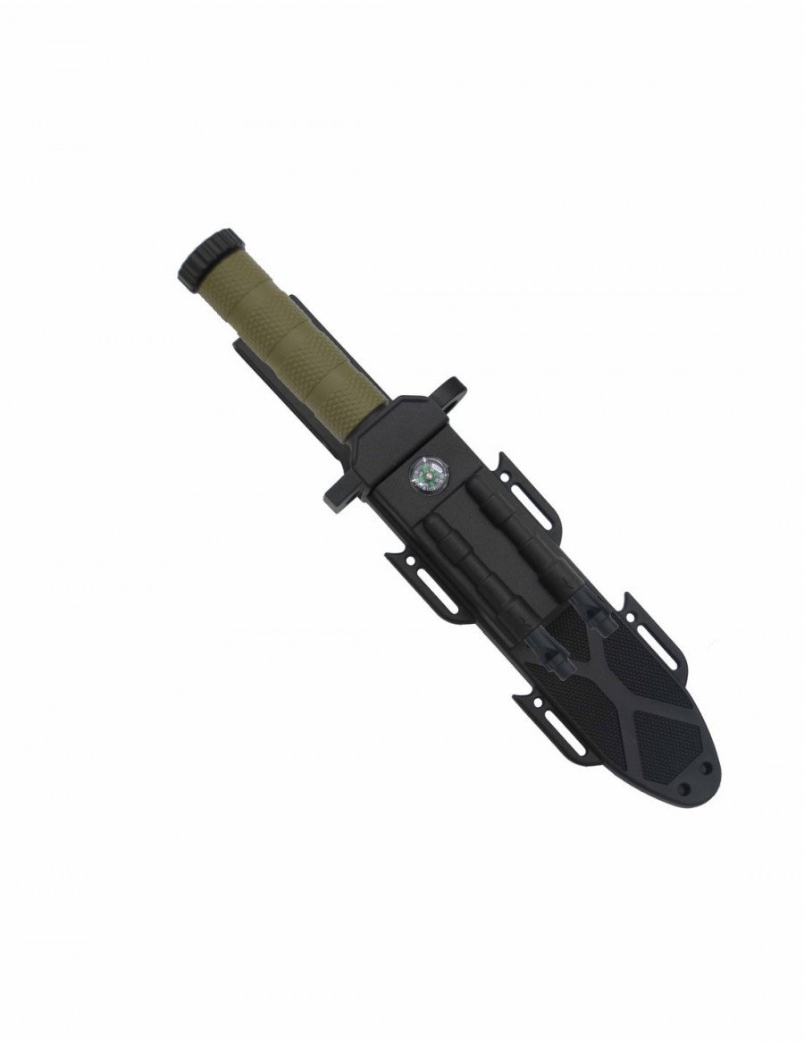Los cuchillos de supervivencia son esenciales para actividades al aire libre, diseñados para resistir condiciones extremas y realizar tareas como cortar madera, preparar alimentos o construir refugios. El mango verde facilita su localización y el diseño robusto responde a la tradición de los equipos militares y de aventura.