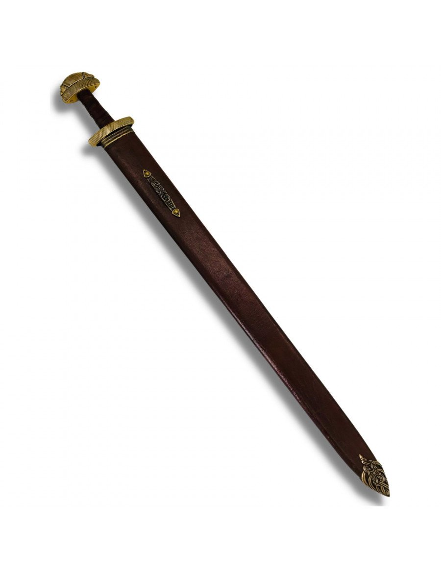 ESPADA VIKINGA JARL CON ACABADO EN BRONCE DECORADO Y FUNDA DE CUERO