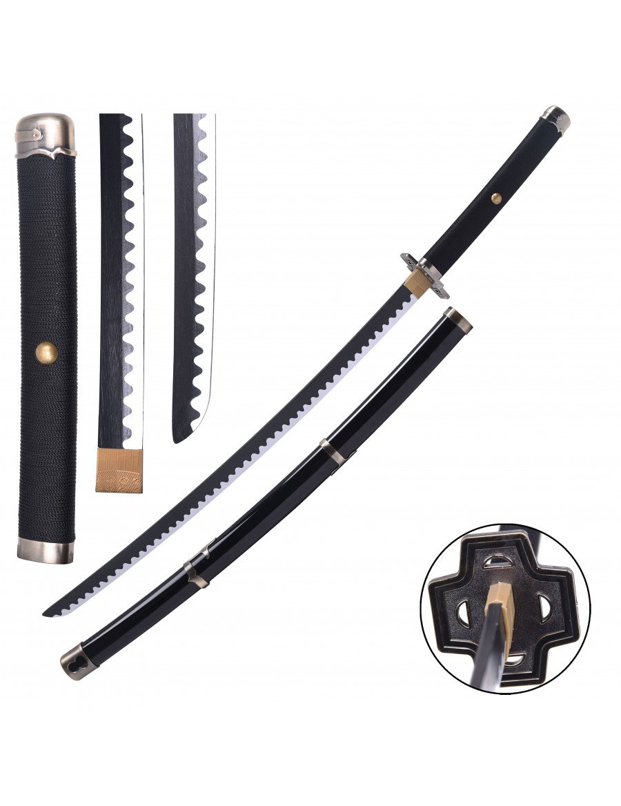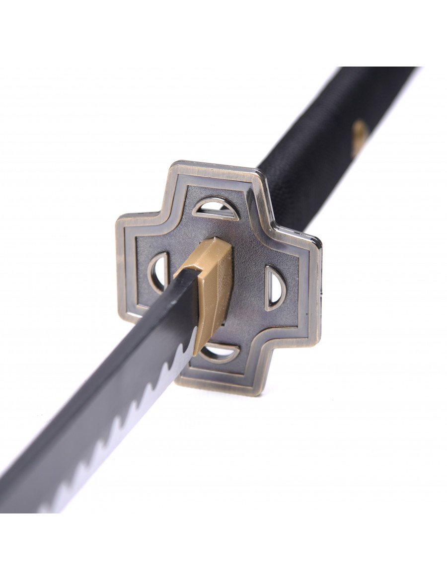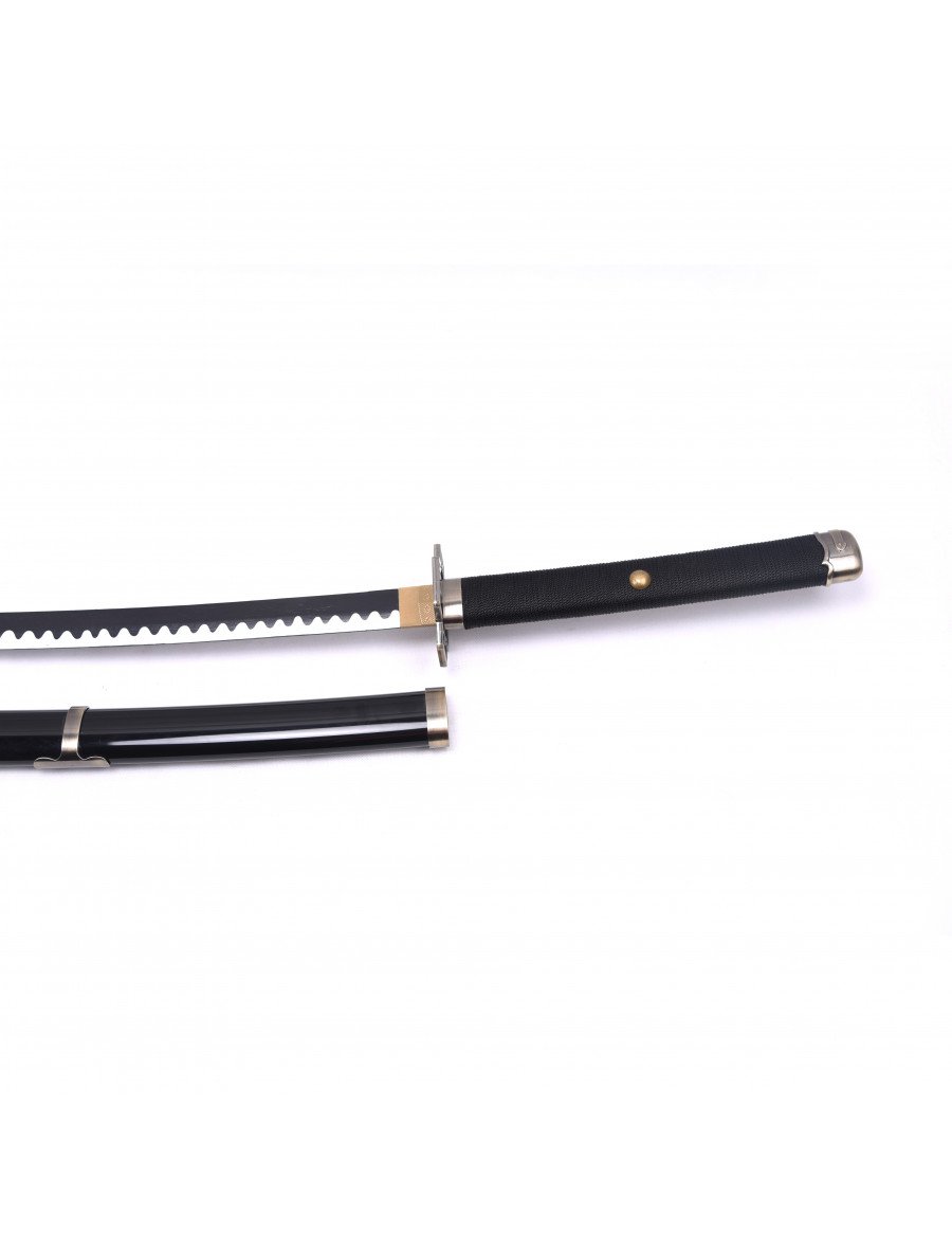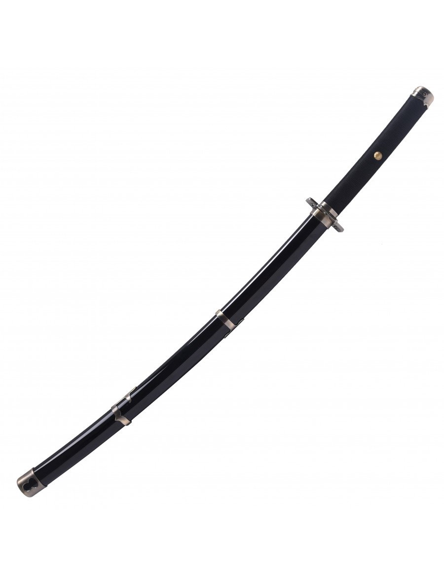 Esta katana de madera reproduce la famosa espada Yubashiri de One Piece, utilizada por el espadachín Roronoa Zoro. Su diseño sobrio y los detalles dorados la hacen destacar en cualquier colección de armas de anime. Las réplicas de madera son ideales para quienes buscan seguridad y fidelidad al original, permitiendo disfrutar de la estética y el simbolismo de las armas japonesas en el universo de la animación.