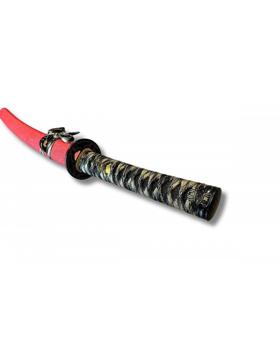 Este wakizashi forjado combina la tradición de los samuráis con la belleza de los motivos florales, presentes tanto en la hoja como en la vaina. Las flores representan la fugacidad y la belleza de la vida, conceptos centrales en la filosofía japonesa. El acero 1045 utilizado en la forja garantiza calidad y durabilidad, mientras que el diseño artesanal convierte esta pieza en una obra de arte apreciada por coleccionistas y amantes de la cultura nipona. Es ideal para regalar o exhibir en espacios dedicados al arte y la historia japonesa.